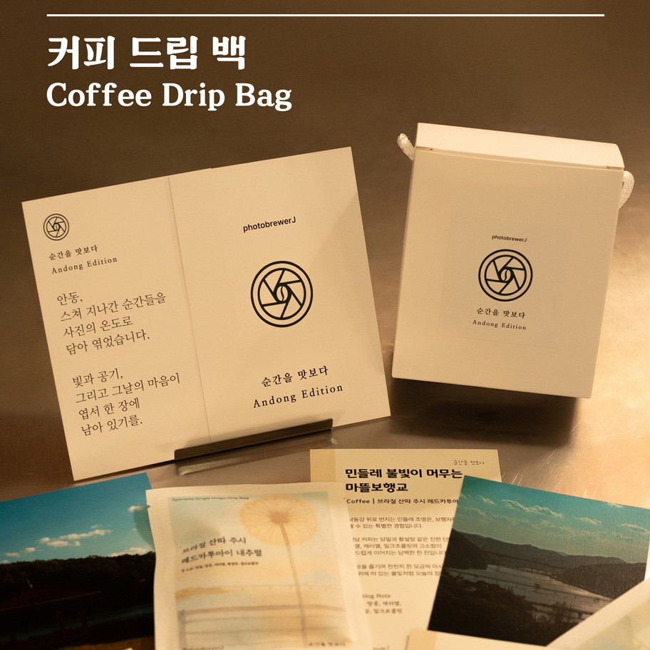 지역의 매력을 담은 사진 엽서와 어울리는 커피 드립백을 함께 즐겨보세요.